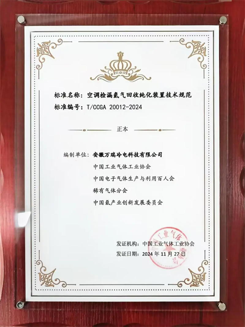 近日,中國工業(ye)氣(qi)體工業(ye)協(xie)會第三十四次會員大會暨2024年年會在湖北武漢(han)召開(kai)。會上,萬瑞冷電自(zi)主(zhu)研(yan)制發(fa)(fa)明(ming)專(zhuan)利(li)“一種(zhong)用于空(kong)調(diao)行業(ye)的廢氦氣(qi)回收系統”獲授氣(qi)體行業(ye)專(zhuan)利(li)金獎,標(biao)志著公司(si)專(zhuan)注氦氣(qi)提(ti)取、純化、液(ye)化及回收技(ji)(ji)術研(yan)究開(kai)發(fa)(fa),取得(de)了新(xin)的成績。作為基礎型專(zhuan)利(li),此次獲獎專(zhuan)利(li)(專(zhuan)利(li)號:ZL 201310284522.4)是公司(si)研(yan)發(fa)(fa)技(ji)(ji)術團隊(dui)歷經多年攻關(guan)的重要創新(xin)成果,公開(kai)了一種(zhong)用于空(kong)調(diao)行業(ye)的廢氦氣(qi)回收系統,突破(po)了本領域關(guan)鍵(jian)性(xing)(xing)、共性(xing)(xing)的技(ji)(ji)術難題(ti),具有能耗低、性(xing)(xing)價(jia)比高(gao)、安全性(xing)(xing)好和自(zi)動(dong)化程(cheng)度高(gao)等特點,兼(jian)具經濟效益與社會效益。